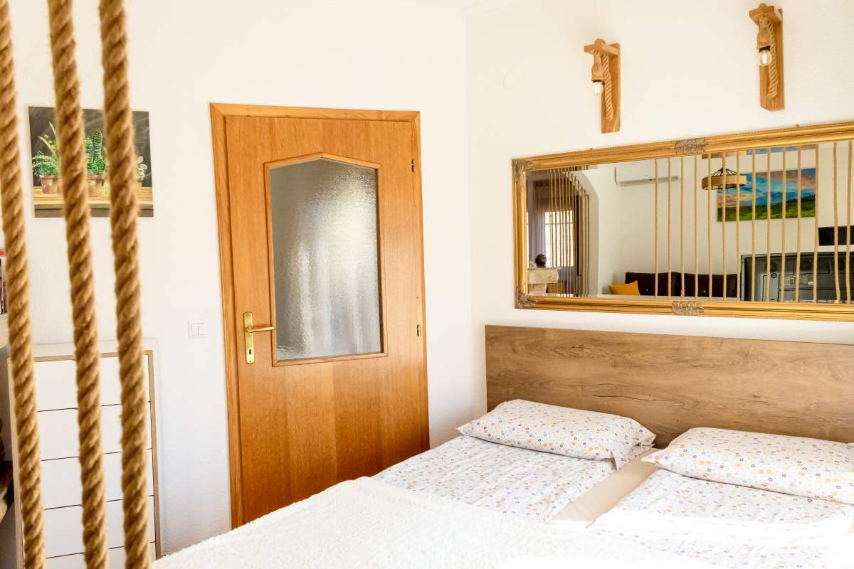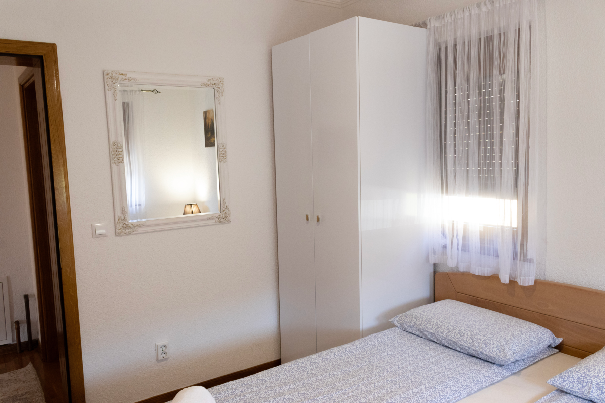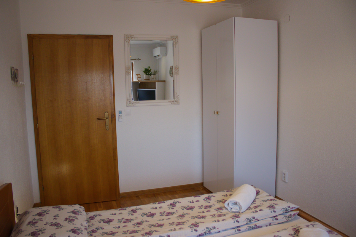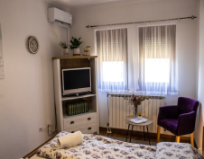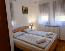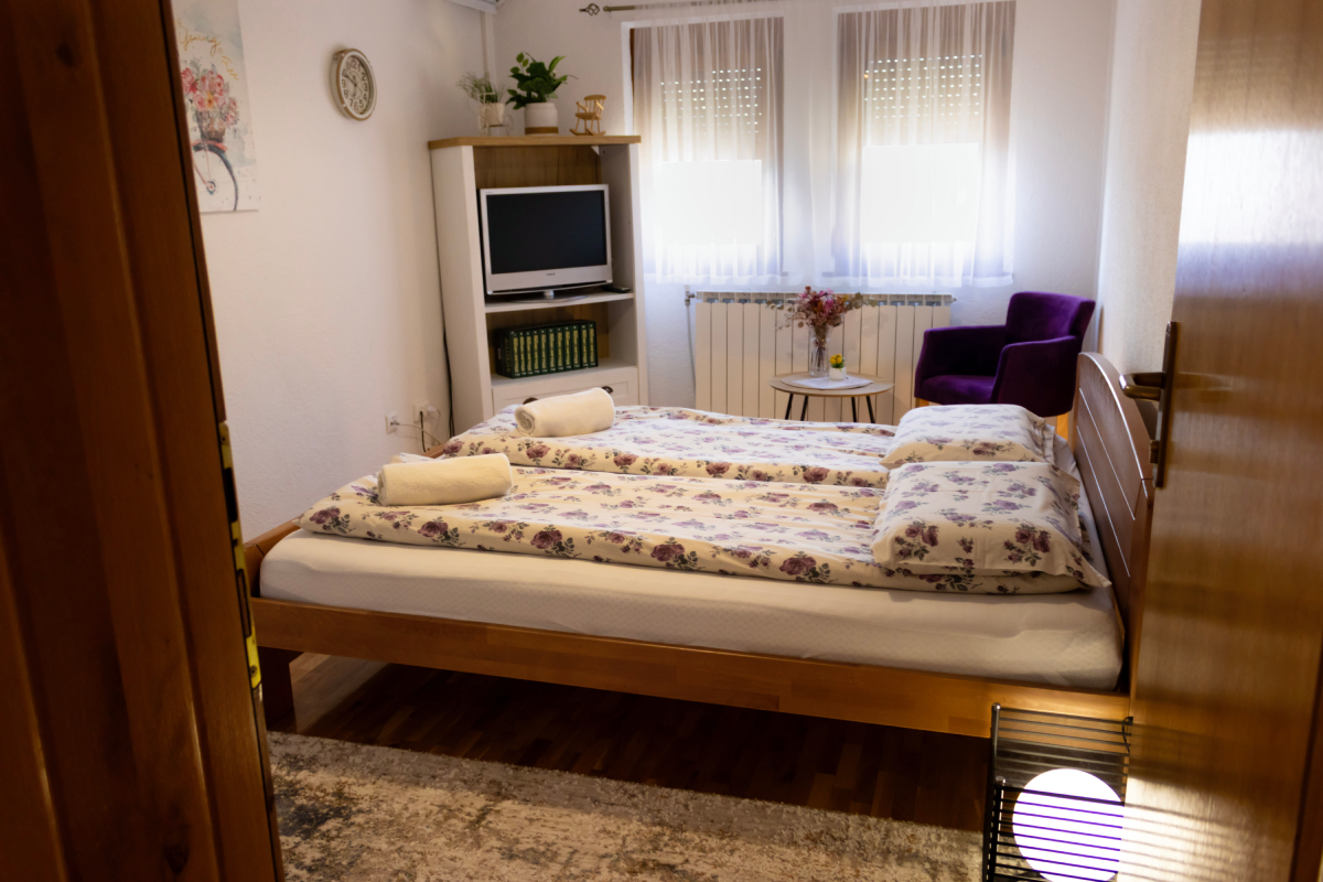 Upper floor area is slightly larger, with 3 bedrooms, one bathroom, kitchen with a dining area and living room. It offers accomodattion for up to 8 people including 2 pull out sofas in the living room. Every room is equipped with a flat screen, livingroom area also has 2 balconies with a splendid view. The front porch area is also free to use for the guests. This unit can be rented as a separate apartment for up to 8 people, or it can be rented as separate rooms with shared bathroom and kitchen.