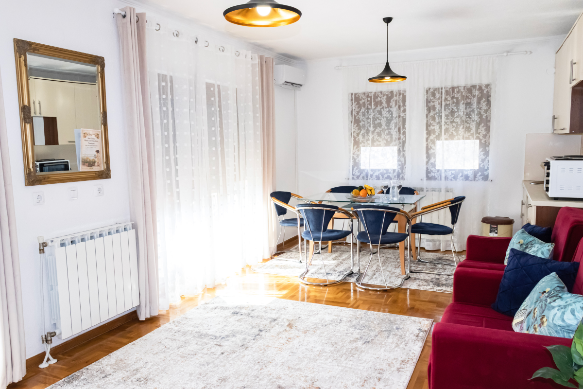 Located on the ourskirt of the city of Visoko, overlooking both the Pyramid of the Sun and the city, the four-bedroom house has a lot to offer for a perfect family getaway. The property has 280 square meters of indoors area, 400 square meters garden, 70 square meters terrace up front and 4 parking spaces, and it offers accommodation for up to 13 people total.